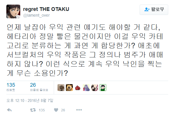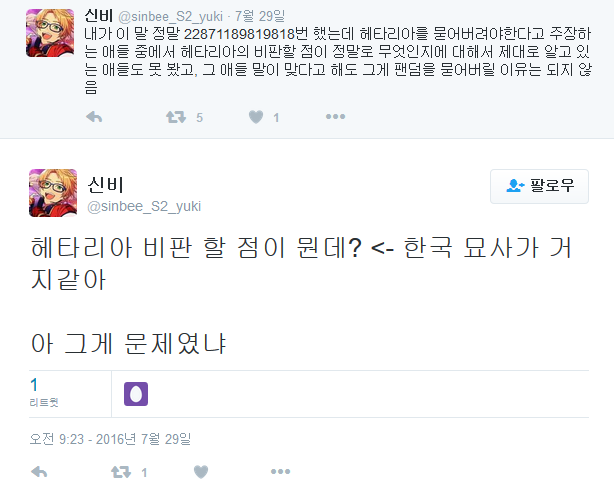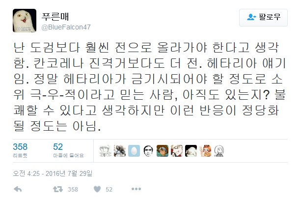 그 외 빻은 소리로 덕질의 자유를 외치고 헤타리아를 쉴드치는 유저들