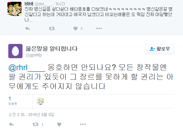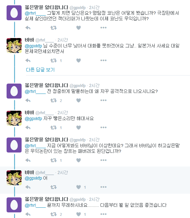 작성자김다니 작성시간 17.03.26 지가 와서 털렸으면서 다신 볼 일 없음 좋겠대 ㅋㅋㅋ 트위터에 왜 블락기능이 있는지 잘 알겠구요; 프로황국신민 ㅇㅈ