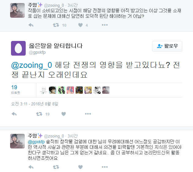 [스크랩] [기타][우익주의] 세계 2차대전을 모에화 및 미화하는 우익애니를 쉴드치는 트위터 유저들.jpg