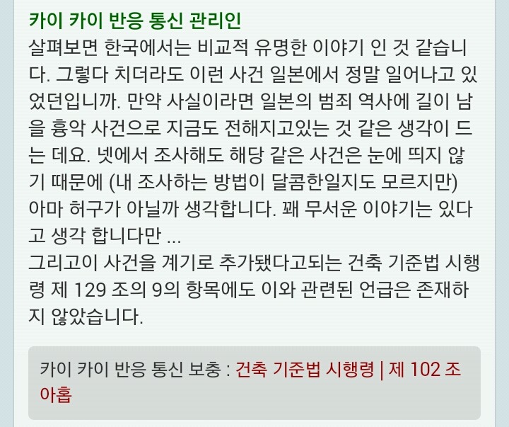 이 일본 블로그의 댓글창에서는 자국 사건이라고 하면 괴담이 거짓임을 들키기 쉬우니