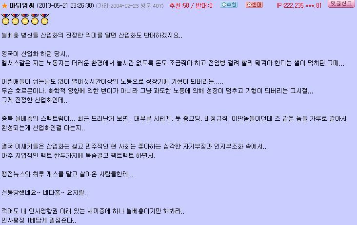 늴베충 병신들 산업화의 진정한 의미를 알면 산업화도 반대하겠지요..