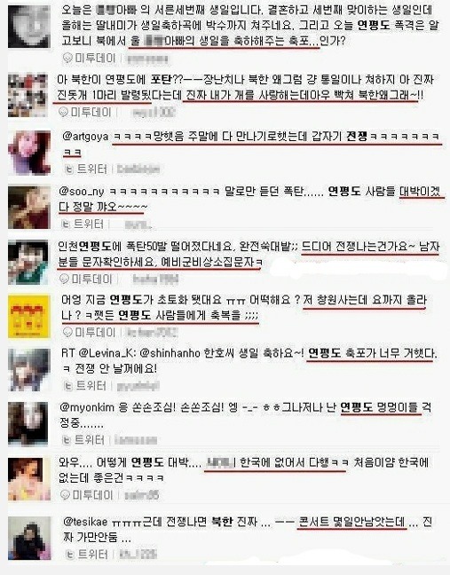 작성자헐퀴아니이럴수가 작성시간 12.06.19 하 ㅡㅡ 말하는 꼬라지보소 어휴 저게 연평도 주민들에게 할소리인가 얼마나 고통받고 힘들었을지 알아야할꺼아님?ㅡㅡ 얼마나 큰일인데 남의일이라고 함부로 말하는거 봐라 ㅅㅂ