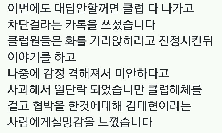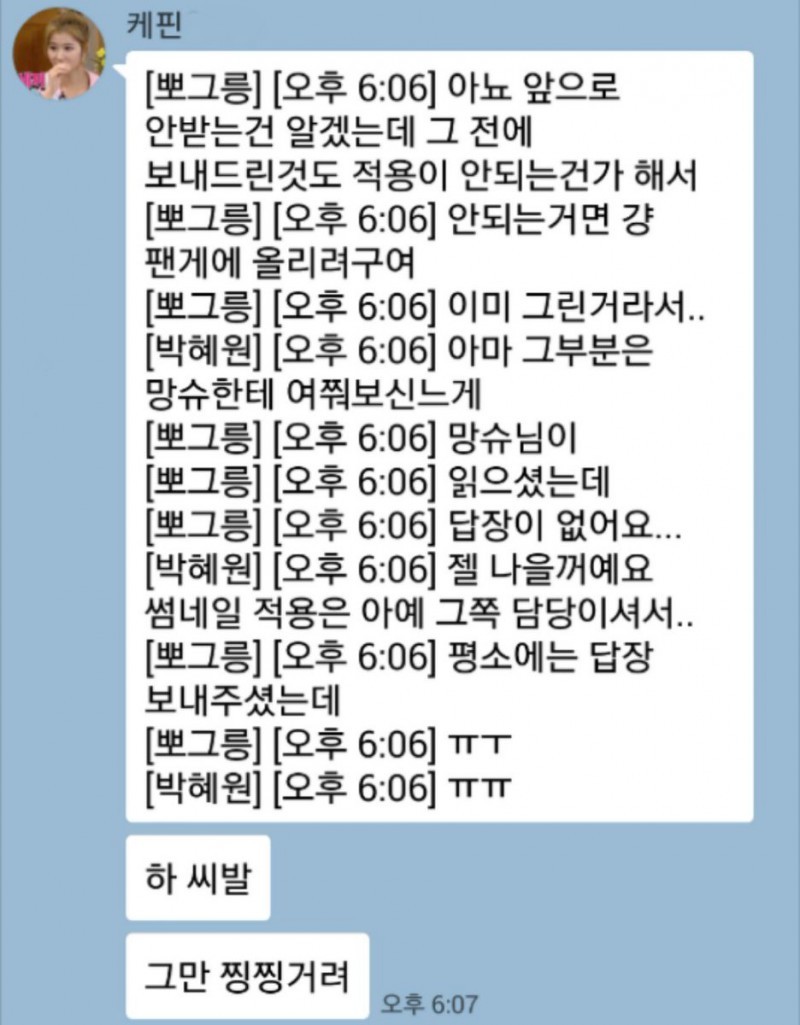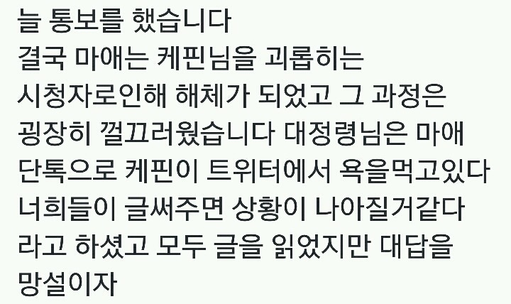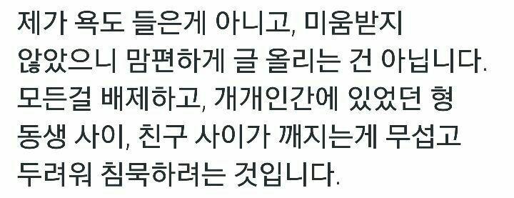 작성자하히후헤윤호 작성시간 16.10.21 와시발 뭔일인가해ㅅㅓ 검색해서보는데 대정령 미친거아니냐... 진짜 옛날 놀이터때부터 봐왔던 사람들인데.... 와 저런사람이었다니.. 이런 상황에도 케핀은 걍 대정령뒤에 가만있네 ㅋㅋㅋㅋ 뷜랑 제일 불쌍
