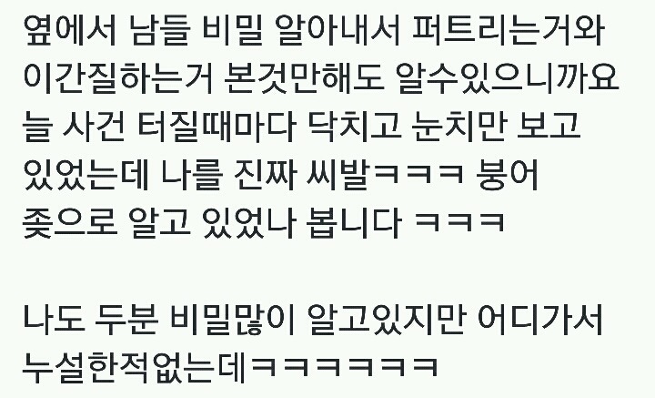 작성자점심은 짬뽕을 먹을 것 같아 작성시간 16.10.20 케핀 너무 정신연령 어린거같은데..? 저래가지고 애 키울수나 있겠어..?ㅋㅋㅋㅋㅋ