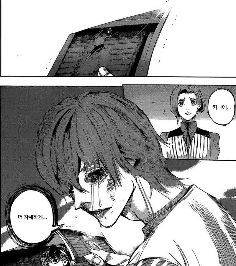 자리를 떠나는 카네키를 무너질듯한 표정으로 바라본다