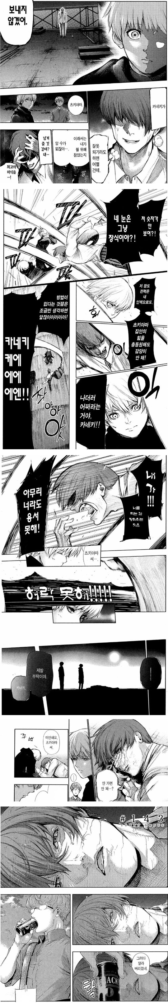 그러다가 결국 카네키 바로 앞에서 털썩 엎어지고 마는데,