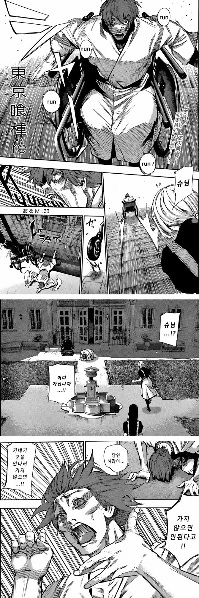 사실을 알게 된 츠키야마는 혼자 움직이지 못하는 몸인데도 카네키가 살아있다는 소식을 듣자마자 미친듯이 카네키를 만나려고 한다
