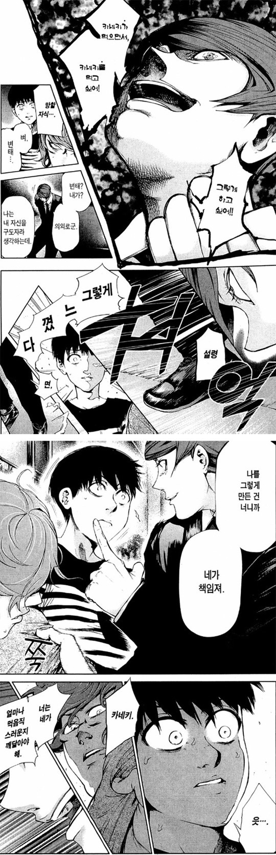 전혀 다른 대답을 하는 카네키를 보며 당황하고,