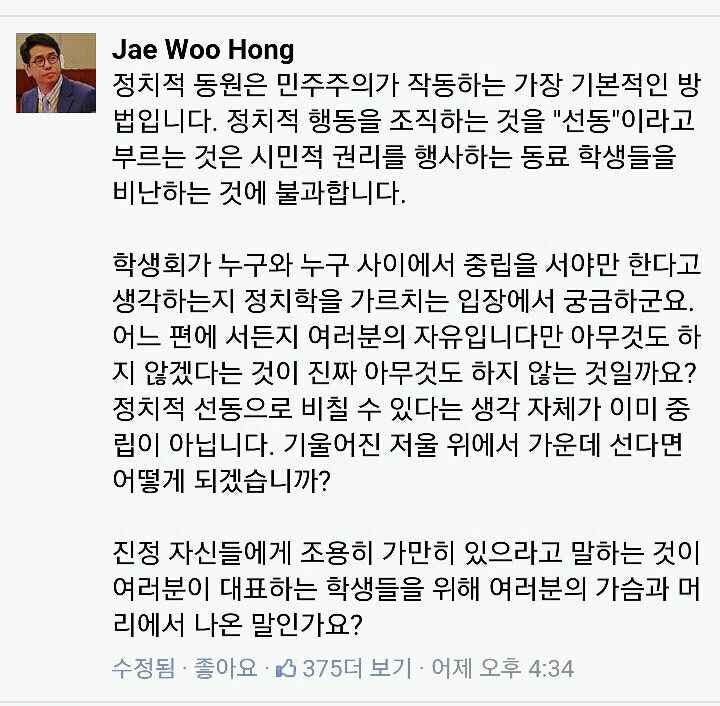 쭉빵카페 [기타]인제대학교 총학생회 중립선언에 인제대 정치외교학과 교수님의 댓글.jpg 작성시간16.11.01|조회수38,325 목록 댓글 43 글자크기 작게가 글자크기 크게가 ㅇㅇ 다음검색 현재 게시글 추가 기능 열기 북마크 공유하기 신고 센터로 신고 댓글 43 댓글 리스트 작성시간 16.11.01 ㅋㅋㅋㅋㅋㅋㅋㅋㅋㅋㅋ 진짜 수치스럽다 저런 애들이 총학생회라니; 작성시간 16.11.01 복금 좀 풀어줄 수 있을까...! 답댓글 작성시간 16.11.01 풀어땅 답댓글 작성시간 16.11.01 고마워 💕 작성시간 16.11.01 아우리학교왜나개망신주냐 카페 방문해 더 많은 댓글 만나기!