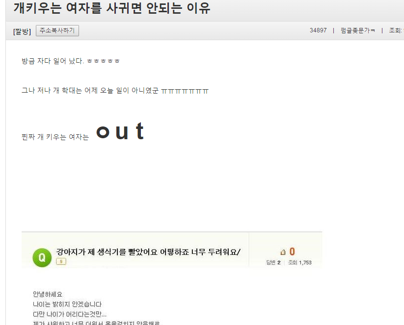 이미지도 개키우는여자들 일반화하려고 긁어온 이미지들이 가장 먼저 보임ㄷㄷㄷ
