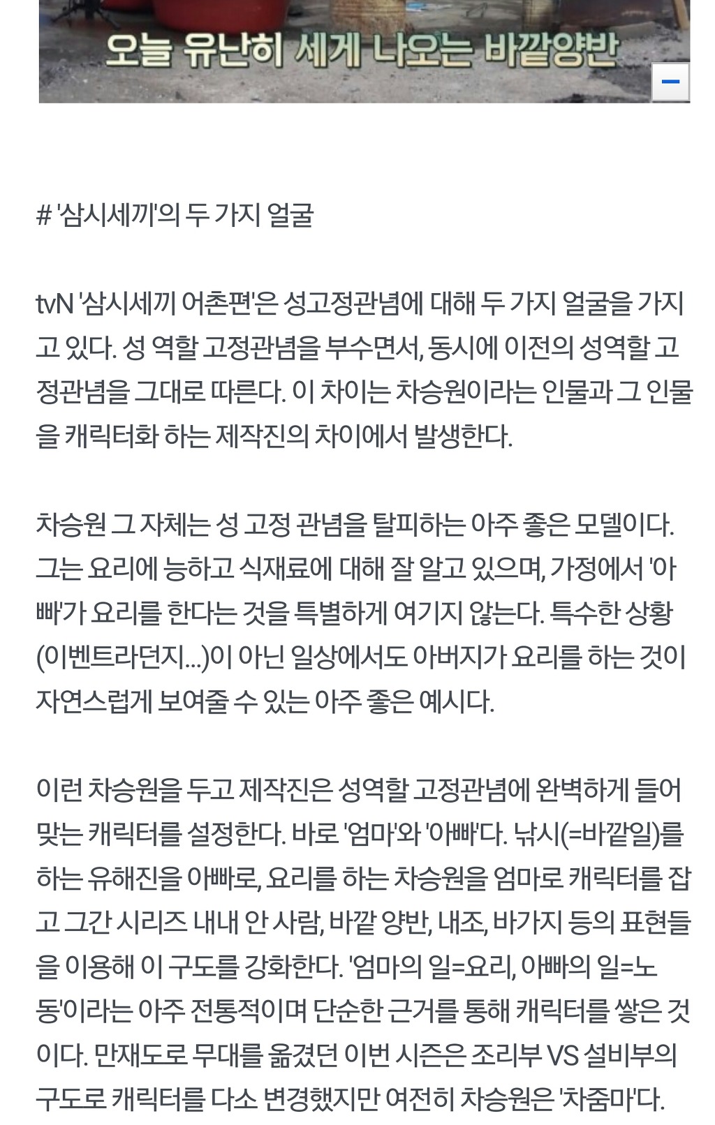 작성자바람개비주먹 작성시간 16.12.18 난 뜬금없지만 요리하는거 엄마역할이라그러면서 드라마나 예능에서 셰프같은 전문적인 이미지에는 결국 남자들만 하는거 이해 못하겠음