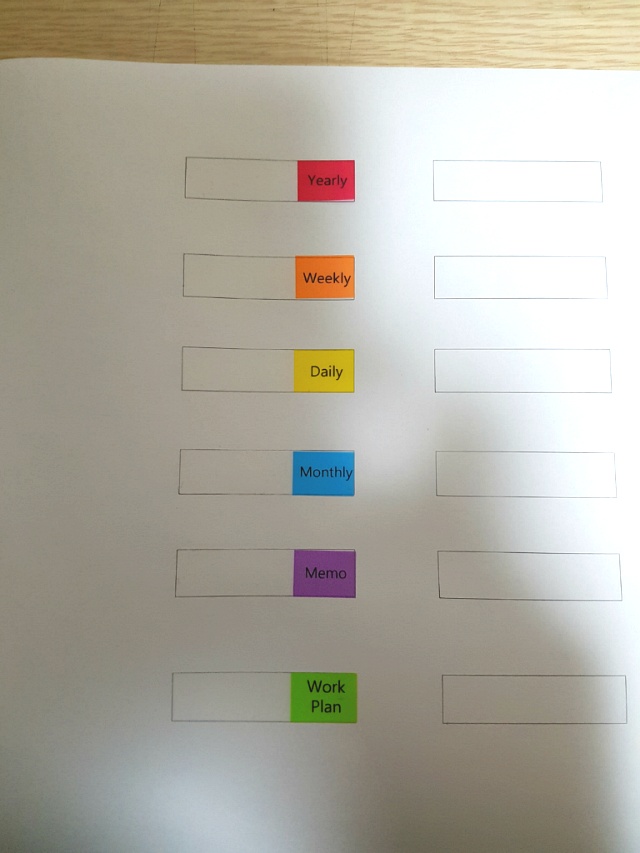 사용하고자 하는 인덱스 테잎을 해당 칸에 이쁘게 맞춰서 붙입니다.
