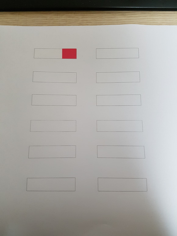출력된 인쇄물의 네모칸에 인덱스 테잎을 붙여보면, 정말 거짓말처럼 딱 맞게 인쇄가 됩니다.