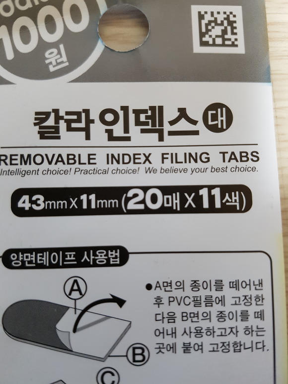 누구나 흔하게 살 수 있는 인덱스 테잎입니다. 크기는 43X11 mm네요