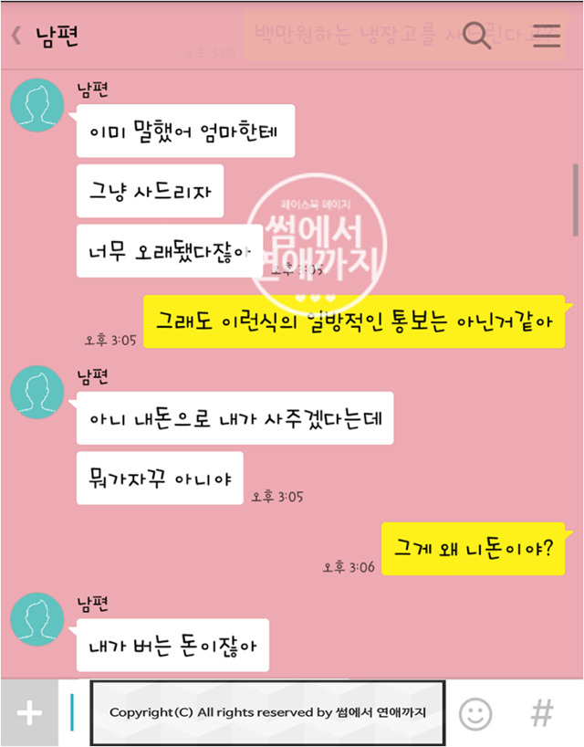 작성자Sweater Weather 작성시간 17.01.04 애기키우는게 노동이냐 당연한거지,, 이부분 ㄹㅇ뭐임,,;그 당연한데 어마무시하게 힘든 걸 아내 혼자 하고있는데 자기 돈이라고 자기 어머니 냉장고 사드린다고 통보하고.. 여자분 말 똑부러지게 잘하시네