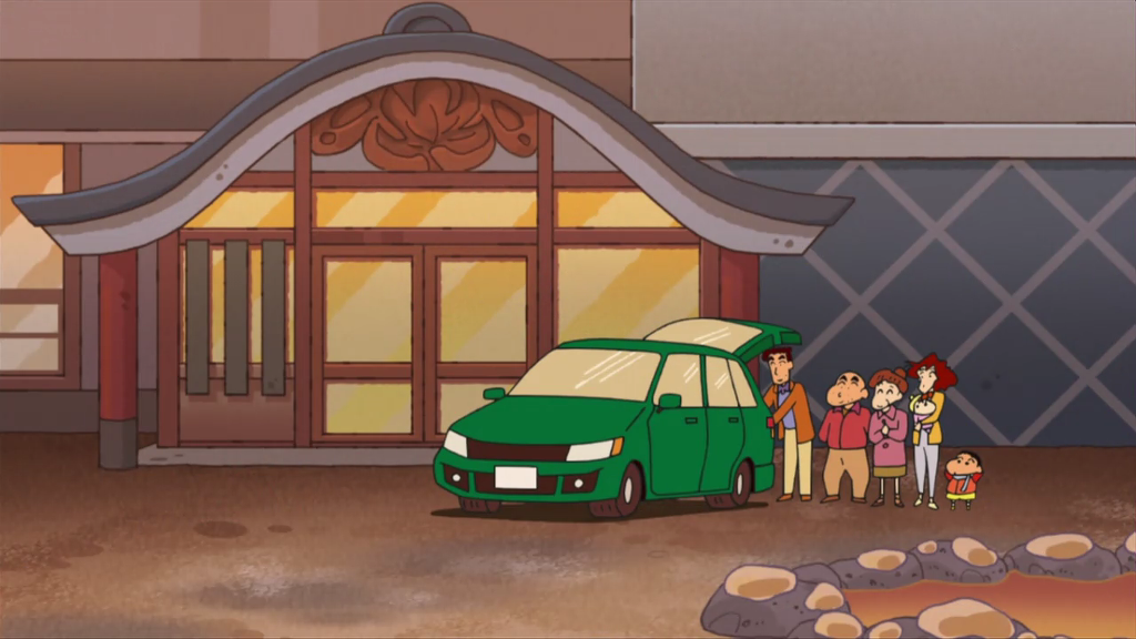 이젠 안녕인 차를 타고 집에 가는 짱구네 가족