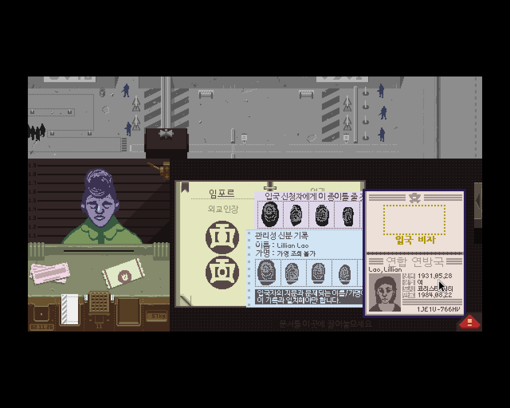 공산국가의 입국관리소에서 근무하는 게임입니다.