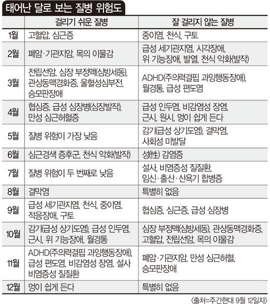 [기타]태어난 달에 따라 걸리기 쉬운 병 작성자다잊엇으|작성시간17.03.31|조회수60,734 목록 댓글 140 글자크기 작게가 글자크기 크게가 연구대상이 뉴욕 한정이라 안맞을 수도 있다고 합니다 다음검색 현재 게시글 추가 기능 열기 북마크 공유하기 신고 센터로 신고 댓글 댓글 140 댓글쓰기 답글쓰기 댓글 리스트 작성자두부김치 먹고싶다 | 작성시간 17.04.01 나 9월 천식 소름 작성자귀가찮다 | 작성시간 17.04.01 12월인데 뭔가 성의없다 저겈ㅋㅋㅋㅋㅋㅋ근데 멍 잘 들긴 함.. 작성자육끼둥 | 작성시간 17.04.01 오히려 잘 안걸리는 질병이 더... 작성자중고 | 작성시간 17.04.01 12월 멍 잘듦 ㅇㅈㅋㅋㅋㅋ 작성자내가누구게-_- | 작성시간 17.04.01 8월...안걸리는병이 없음....종합병원임 댓글 전체보기