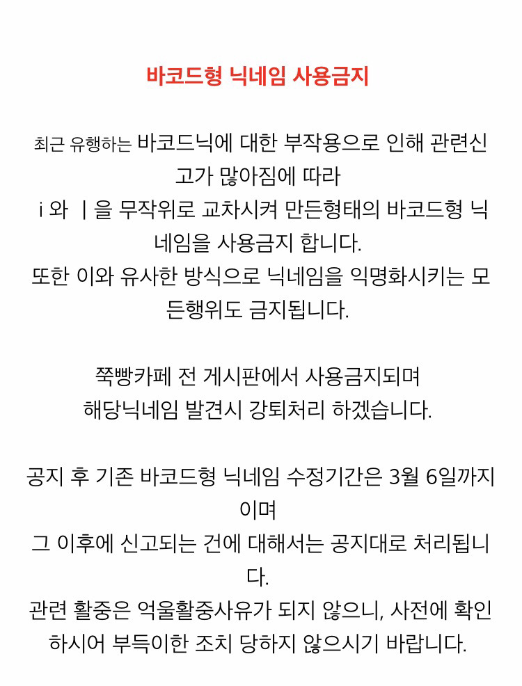 최근 바코드닉 악용 사례가 늘어나면서 건게에 해당 닉을 금지 하자는 건의가 올라오기 시작함