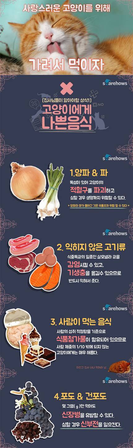 고양이에게 나쁜 음식에 대해 알아봅시다. 어떤 것들이 있을까요???
