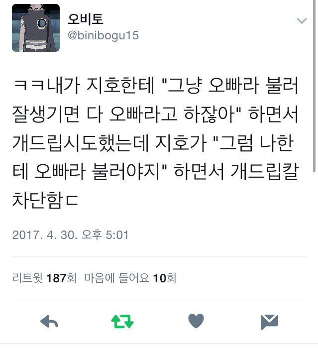 [유머]잘생겼으니 오빠라고 부르라는 개드립 칼차단한 여돌 작성자태현센세|작성시간17.05.16|조회수584,635 목록 댓글 125 글자크기 작게가 글자크기 크게가 오마이걸 지호오..오빠..! 다음검색 현재 게시글 추가 기능 열기 북마크 공유하기 신고 센터로 신고 댓글 댓글 125 댓글쓰기 답글쓰기 댓글 리스트 작성자살앙아 | 작성시간 17.05.16 오 대박 작성자유회승(23) | 작성시간 17.05.16 레알 작성자난 너의 공범자 절대 배신 안해 | 작성시간 17.05.16 인정 작성자수웅엉 | 작성시간 17.05.16 지호 잘생겼어 ㅋㅋㅋ잘생쁨 작성자댕댕이키우고싶따 | 작성시간 17.05.21 지호오빠!ㅋㅋㅋㅋㅋㅋ 댓글 전체보기