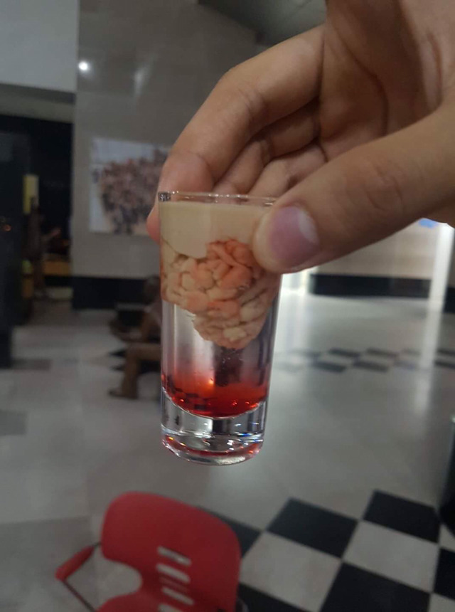 피치리큐어에 베일리스를 살살 띄워서 뇌 모양을 만들고 그레나딘 시럽으로 피 모양을 만든 칵테일. 다른 이름은 뇌출혈(Brain Hemorrhage) 칵테일.