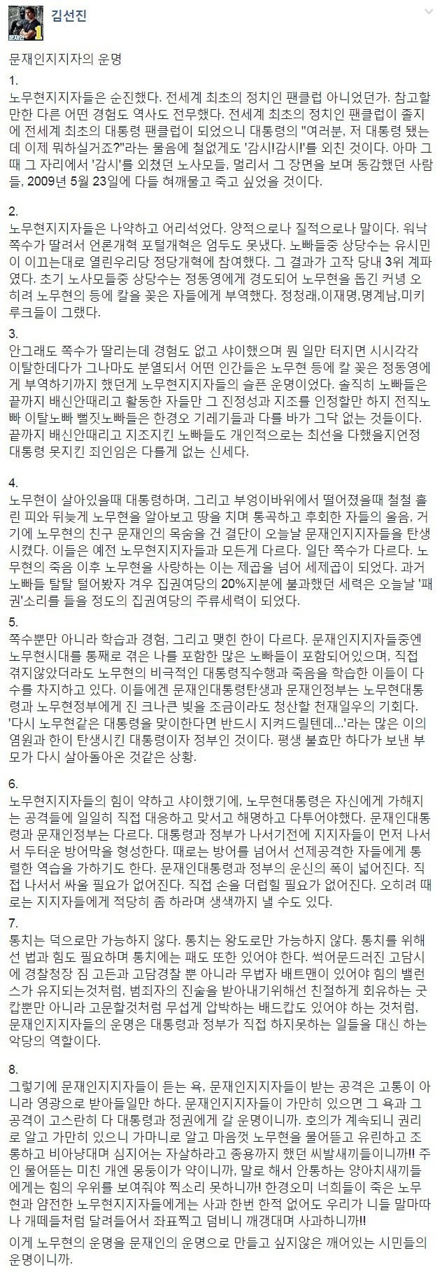 [스크랩] [기타]김반장(권갑장) 페북 - 문재인지지자의 운명 작성자자유일본당 틀린정당 국민외당|작성시간17.06.09|조회수640 목록 댓글 3 글자크기 작게가 글자크기 크게가 https://www.facebook.com/kimsunjin1977/posts/10155171923786893 다음검색 스크랩 원문 : 비공개카페 현재 게시글 추가 기능 열기 북마크 공유하기 신고 센터로 신고 댓글 댓글 3 댓글쓰기 답글쓰기 댓글 리스트 작성자인디자인 | 작성시간 17.06.09 힝..눈물난다....ㅠㅠㅠㅠ 작성자2017.05.10. | 작성시간 17.06.09 니들이 암만 지랄해봐라 또 당하나 *^^* 작성자전자레인지돌려돌려 | 작성시간 17.06.09 시발 눈물난다 이니건들면다뒤져 댓글 전체보기