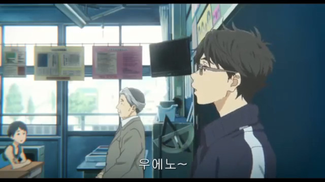 귀가 들리지 않아 필기를 못하는 쇼코대신 중요 부분을 필기해주는 우에노