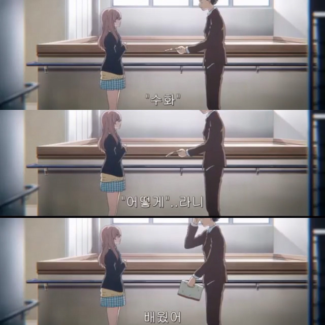 이시다에게 친구가 되고 싶었던 쇼코지만 이시다가 수화를 알리 없지....이시다는 쇼코 노트를 연못에 던져버리고 먼저 가버림