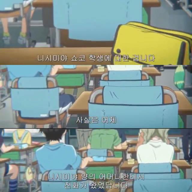 그리고 머지않아 계속 되는 아이들의 무시와 괴롭힘에 결국 쇼코는 전학을 가게 됨