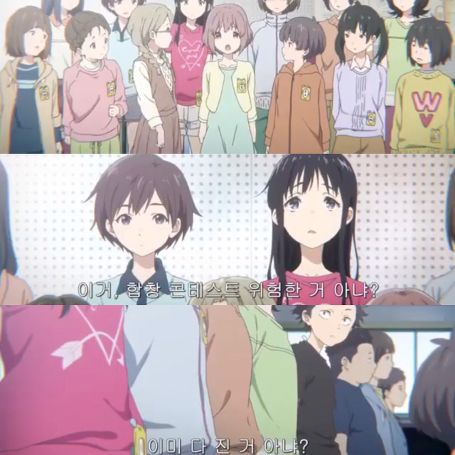 합창 연습도중 쇼코는 한박자 빠르게 노래를 시작함