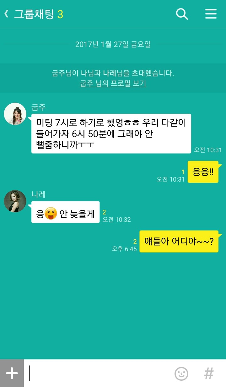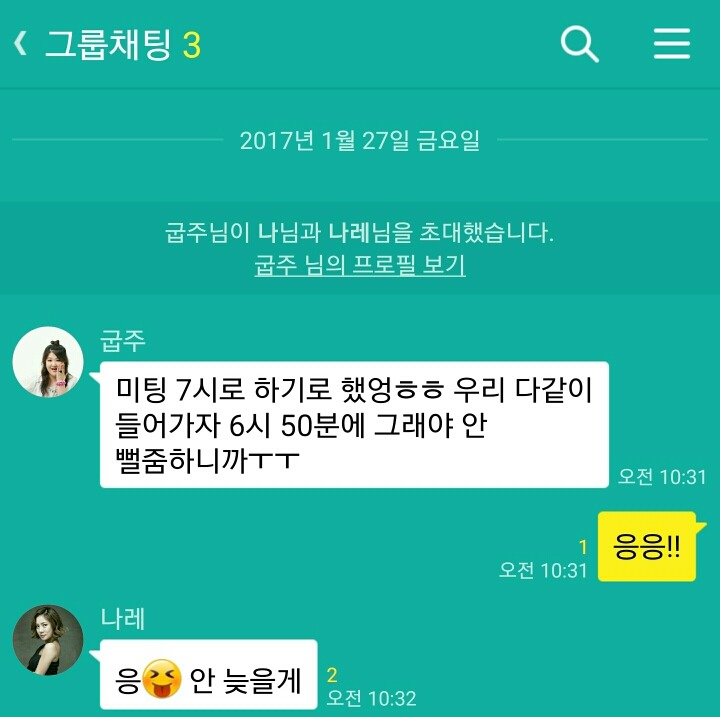 요즘은 미팅 만남 약속을 단톡방을 만들어서 하기도 하지만