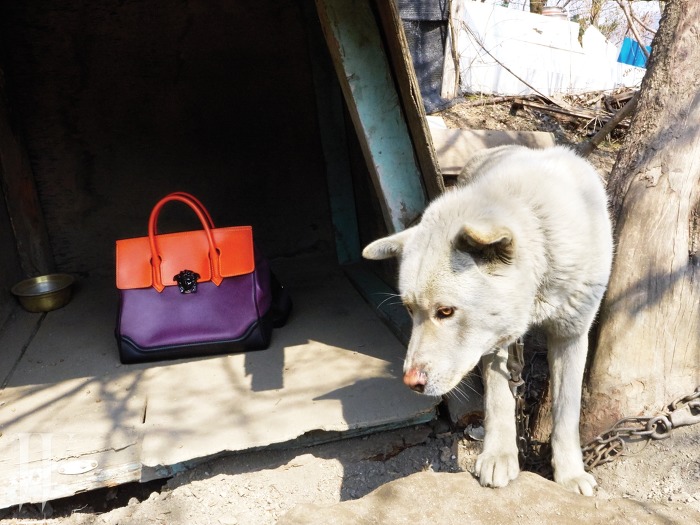 왼쪽부터|유춘영 할머니가 든 벨벳소재의 빨강클러치는 Jimmy Choo, 김오식 할머니가 든 샛노란 하드 케이스 토트백은 Salvatore Ferragamo, 체인에 달아놓은 칼리토 키 참은 Fendi, 조동복 할머니가 쓴 트위드 소재의 보터 모자는 Chanel 제품.