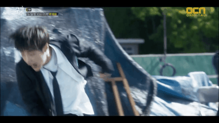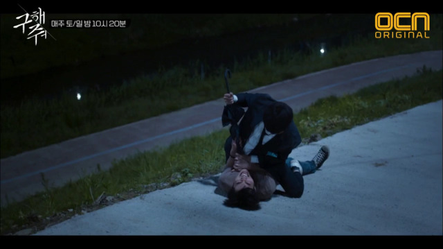 흉기 가지고 덮치려는 일찐놈때문에 상환이까지 다칠까봐 지 몸 던져서 같이 굴러떨어졌는데