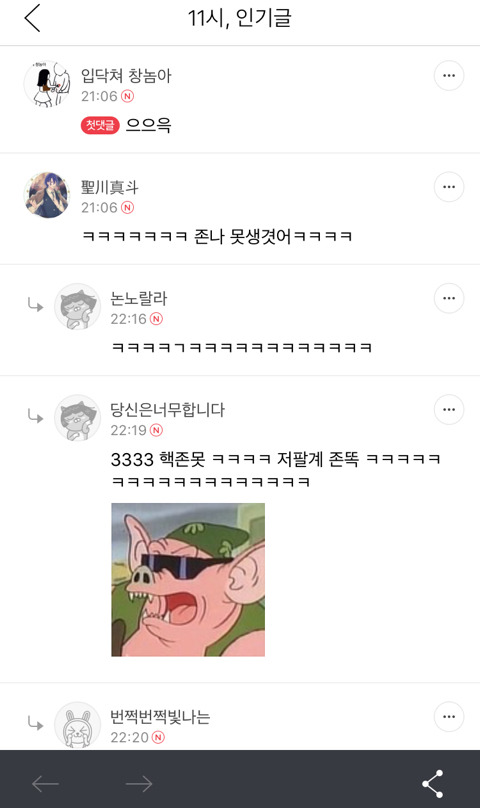 소름돋는 건 게시판 이름; 니네 인생 부끄러운 줄 알길ㅋㅋ