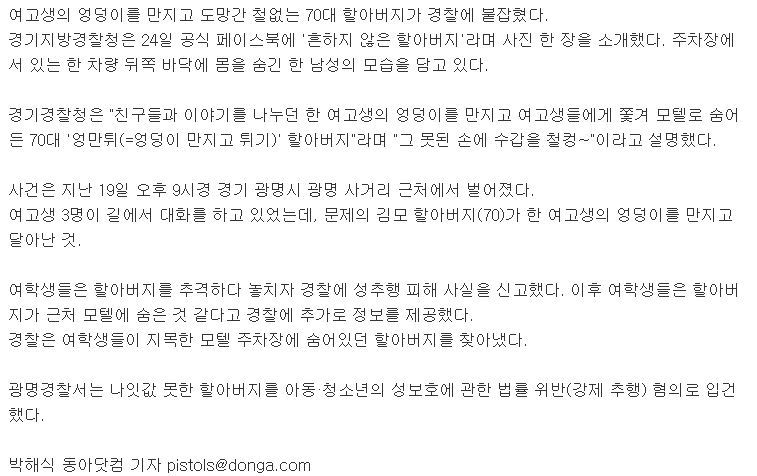 [스크랩] [기사]여고생 엉덩이 만지고 도망간 철없는 70대 할아버지 작성자지느안느연느유느|작성시간14.06.26|조회수5,982 목록 댓글 8 글자크기 작게가 글자크기 크게가 다음검색 스크랩 원문 : I Love Soccer (축구동영상) 현재 게시글 추가 기능 열기 북마크 공유하기 신고 센터로 신고 댓글 댓글 8 댓글쓰기 답글쓰기 댓글 리스트 작성자지지지코코코 | 작성시간 14.06.27 왜저러실까... 작성자이그노어오파 | 작성시간 14.06.27 쓰레기인생ㅋㅋㅋㅋㅋㅋㅋㅋㅋ빨리마포대교에서뛰어내려라 작성자완전배고프다;; | 작성시간 14.06.27 왜 저러고살아ㅉㅉ 작성자무좀인 | 작성시간 14.06.27 ㅁㅊ 작성자백현 : 뜻밖의 열애 | 작성시간 14.06.28 아존나시룸진짜짱시룸;;;;;; 댓글 전체보기