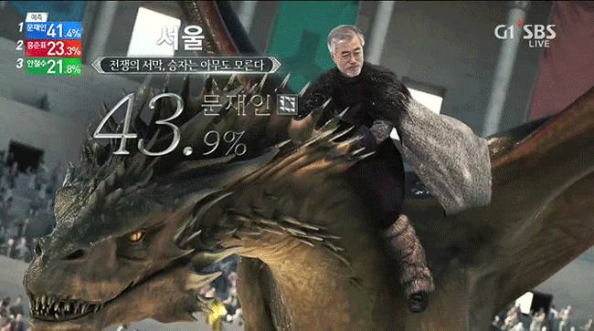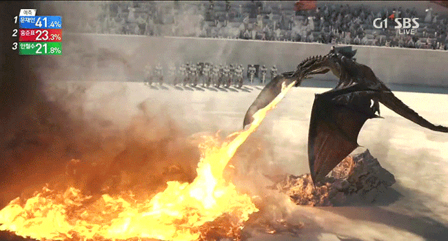 왕좌의 게임 대너리스 장면을 패러디한 sbs 대선개표방송