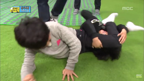 보는 사람은 등치도 힘도 훨씬 센 니가 봐줘야지! 하지만