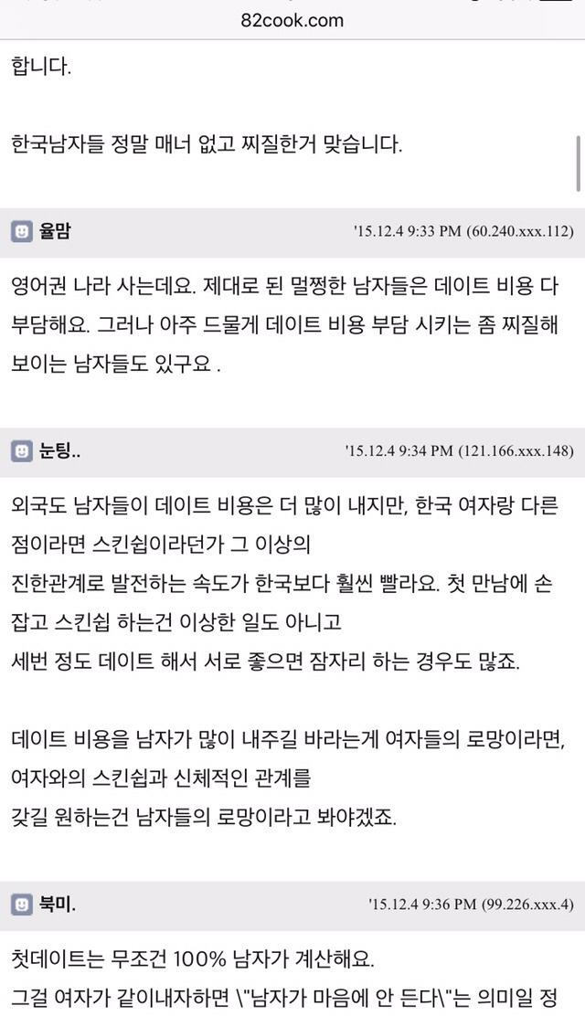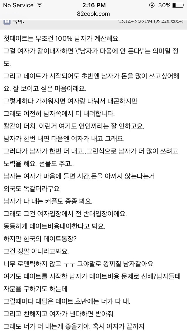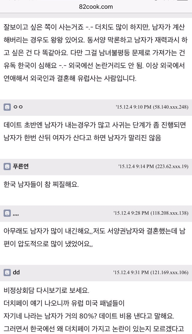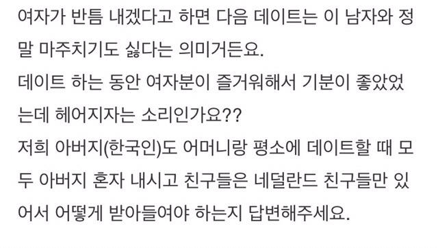 (외국여자들은 데이트 비용 더치한다던데 ?등등)