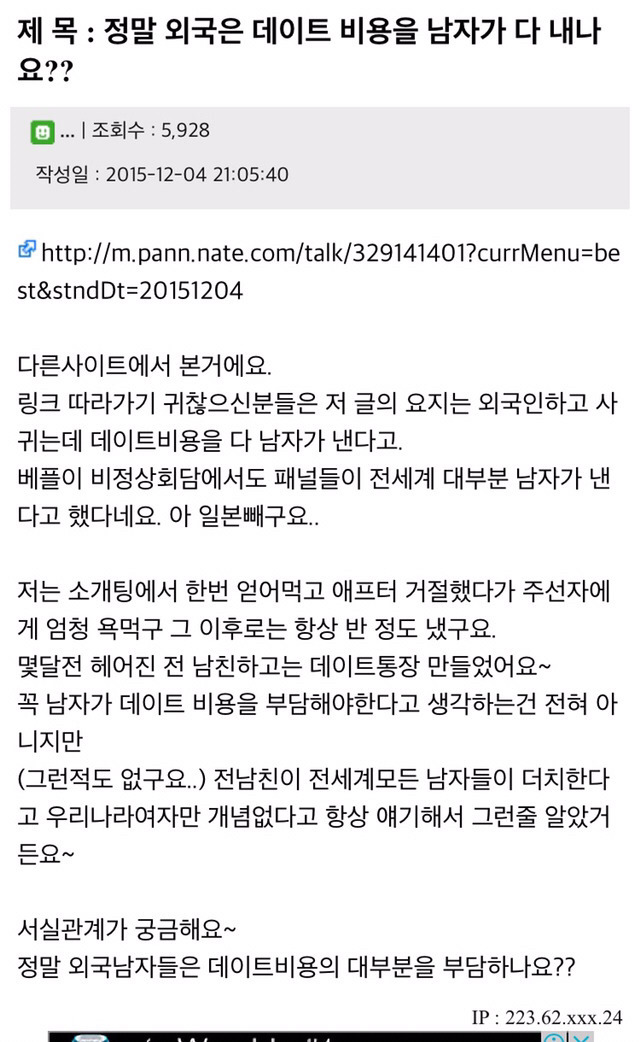 외국인들도 데이트 비용 남자가 매번 100%낸다가 요지가 아님, 데이트 비용을 은근히 내기 강요하거나 안낸다고