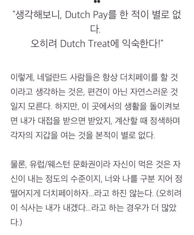 '정작 오리지널 더치들은 모르는 더치페이'<ㅋㅋㅋㅋ