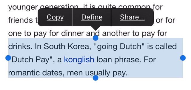 이를 칭히는 의미가 퇴색돈 콩글리쉬 '더치페이'를 말고