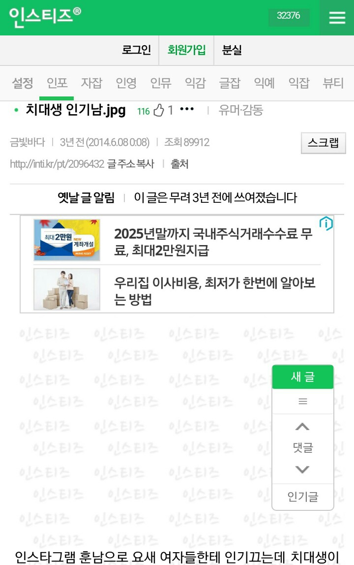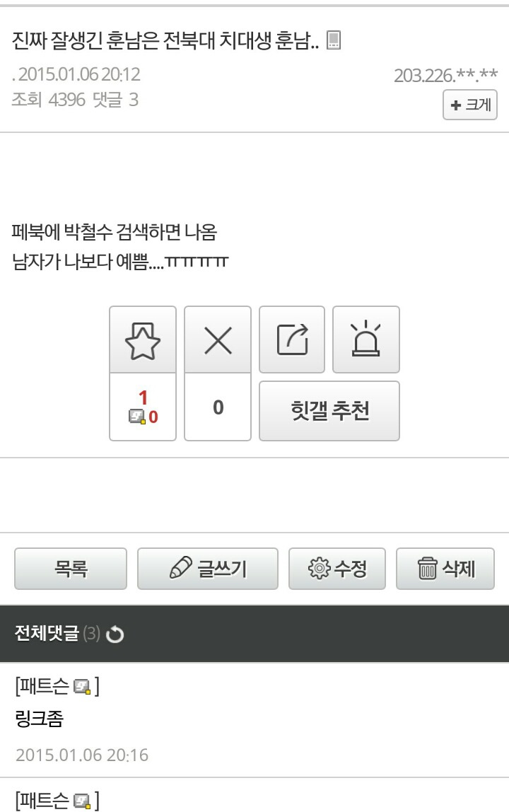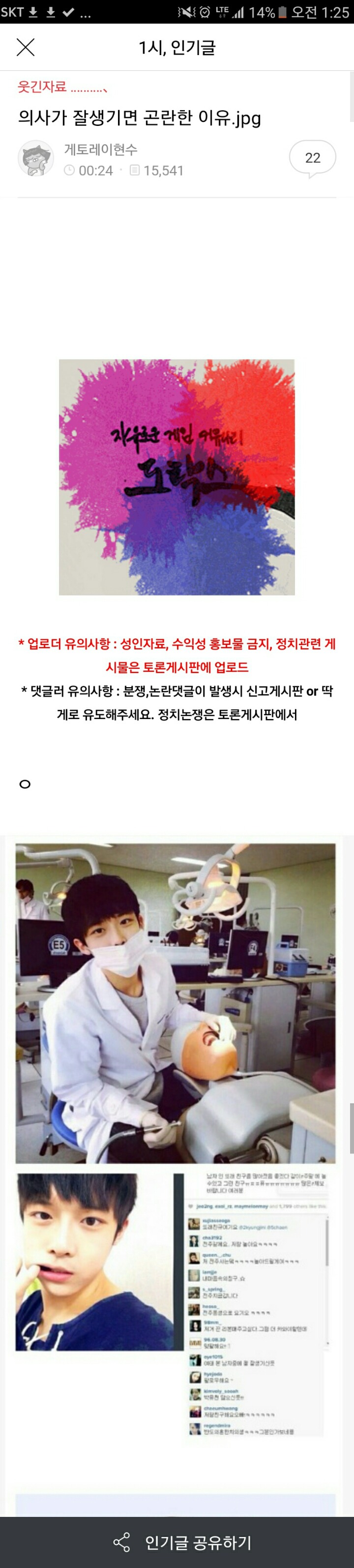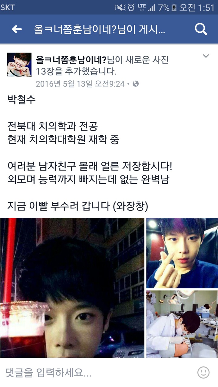 모 남초카페에 훈남 치대생 글이 올라오자