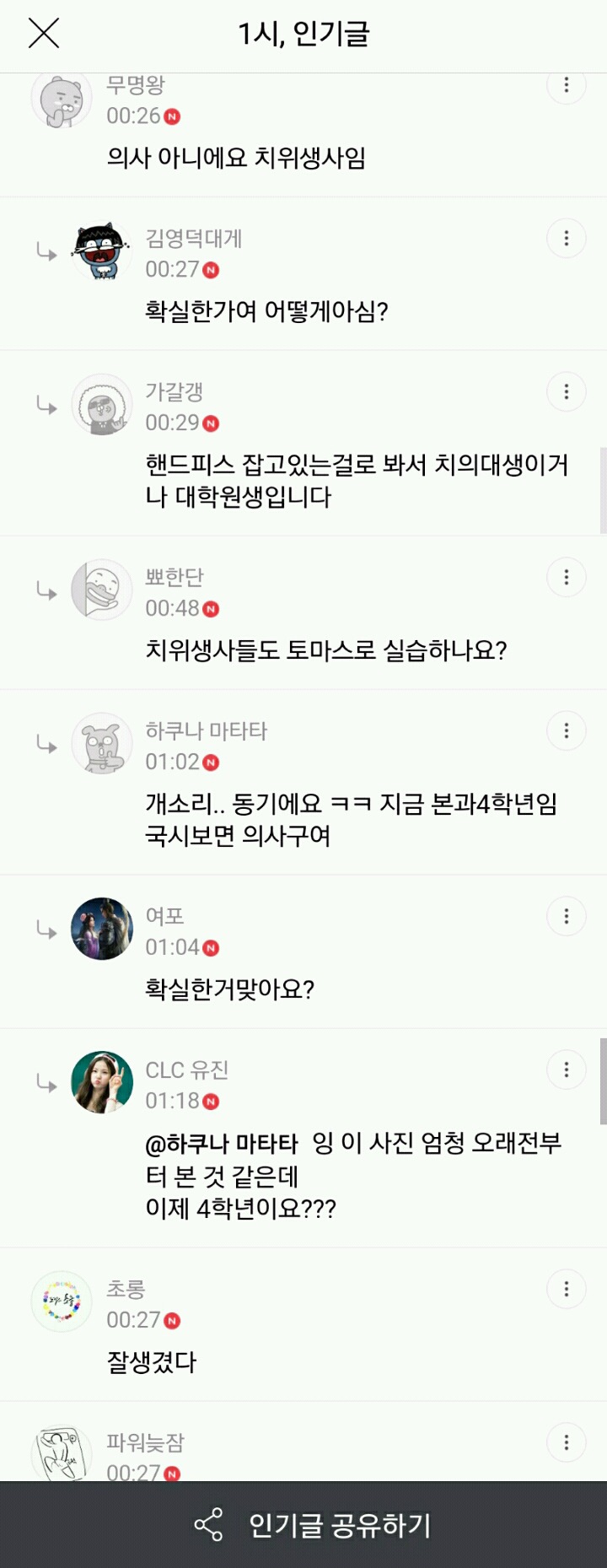 댓글에 의사가 아니라 치위생사다.