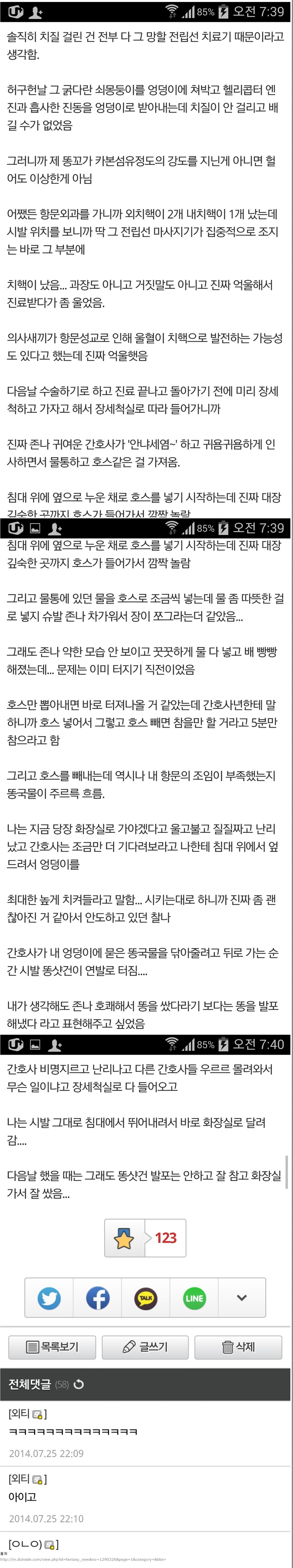 [스크랩] [기타]디씨인의 항문치료 후기 작성자만수르처럼 부자 되고 싶다|작성시간14.08.01|조회수7,863 목록 댓글 8 글자크기 작게가 글자크기 크게가 현재 브라우저가 audio 태그를 지원하지 않습니다. 다음검색 스크랩 원문 : 이종격투기 현재 게시글 추가 기능 열기 북마크 공유하기 신고 센터로 신고 댓글 댓글 8 댓글쓰기 답글쓰기 댓글 리스트 작성자베이비돌맘 | 작성시간 14.08.01 더러워시밬ㅋㅋㅋㅋㅋㅋㅋㅋㅋㅋㅋㅋㅋㅋㅋㅋㅋㅋㅋㅋㅋㅋㅋㅋㅋㅋㅋㅋㅋㅋㅋㅋㅋㅋㅋㅋㅋㅋㅋㅋㅋ 작성자동아애니볼 | 작성시간 14.08.02 읽으면서 나도 꺄아아앙악거림ㅋㅋㅋㅋㅋㅋㅋㅋㅋㅋㅋㅋㅋ 작성자한 여름밤의 꿒 | 작성시간 14.08.02 필력ㅋㅋㅋㅋㅋㅋㅋ존나웃겨 작성자skandntrk | 작성시간 14.08.02 간호사가 잘못햇넼ㅋㅋㅋㅋㅋㅋㅋㅋㅋㅋ 졸웃 작성자쒜쒜쒜☆ | 작성시간 14.08.02 아니라고 왜 말을 모태! 댓글 전체보기