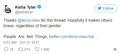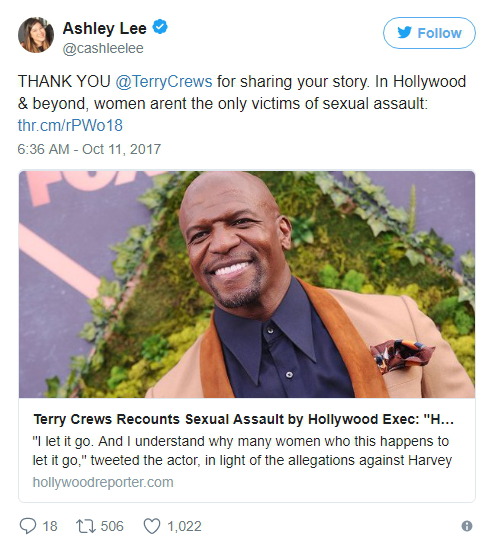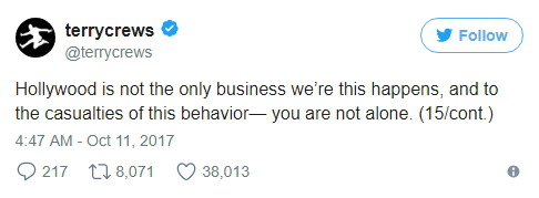 이런 일이 일어나는 건 할리우드뿐만이 아니다. 이런 행위로 피해 입은 사람들에게 전한다. 당신은 혼자가 아니다.