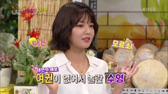 수영 "저거를...돈을 받아야 할 것 같아요. 저사진을 계속 이모티콘으로 쓰더라구요"