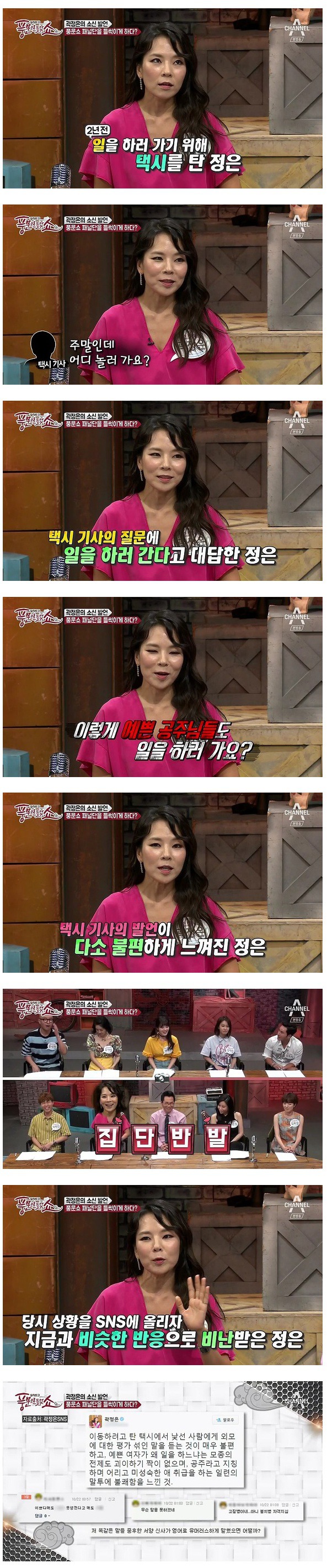 작성자분홍설탕코끼리 작성시간 17.10.22 쭉빵에서도 셀쿠 깨고 지랄난장났었잖아ㅋㅋㅋ 우리아빠가 택시기산데 ㅠㅠ 저런 취급당할 샌각하니까 ㅠㅠ 너무맘이아프네.. 먹먹 광광 훌쩍