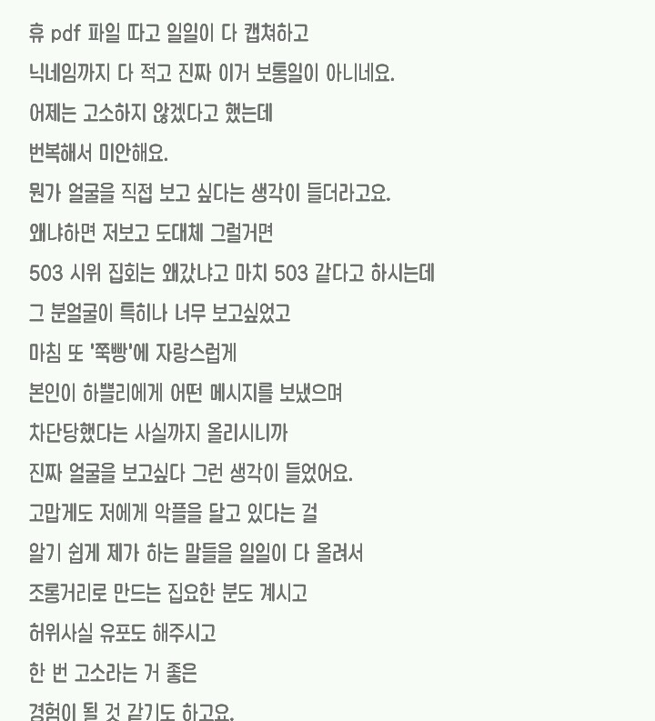 503탄핵 시위에 갔는데 왜 503 같은 짓을 하냐라는 말을 들었다는 거 같음