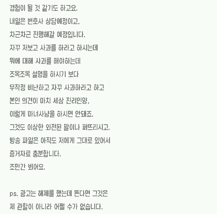 가볍게 사용한 것에 대해서도 또 한번 죄송합니다 그리고 사과드립니다.